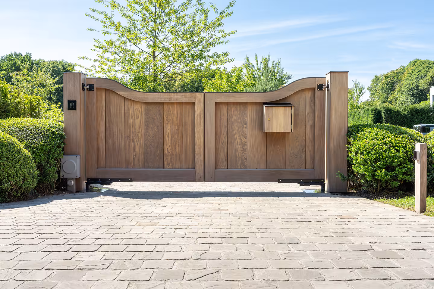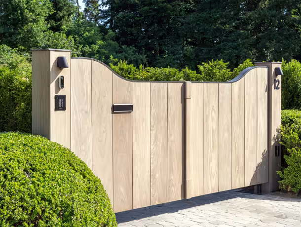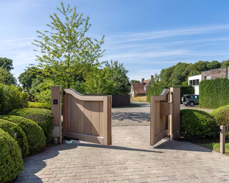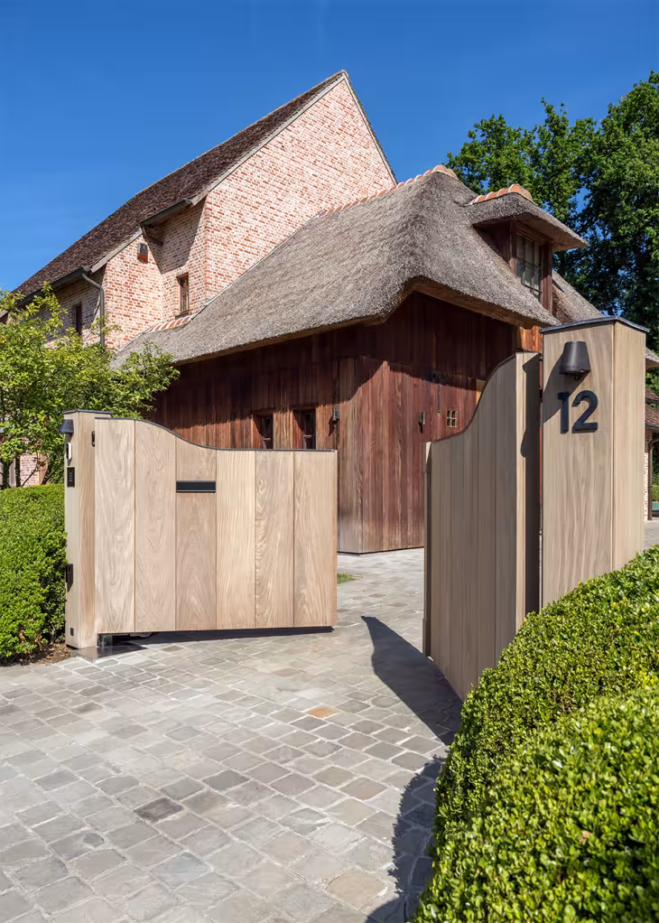 The gate fits perfectly with the style of our home. Authentic, warm and yet very solid.