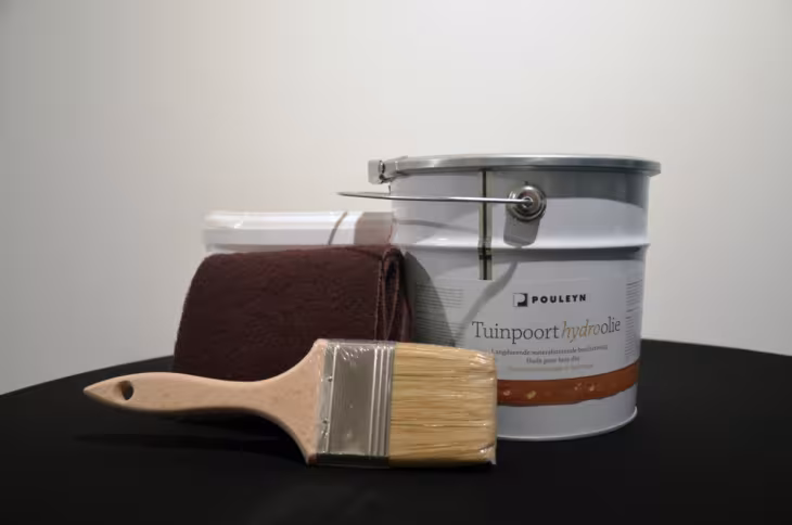 Afin d'optimiser la durée de vie et l'aspect de nos portails en bois et de nos menuiseries extérieures, nous avons développé notre propre hydro-huile, exclusivement pour nos clients. Cette formule unique – exclusive à Pouleyn – garantit un vieillissement uniforme du bois et empêche l'eau de stagner, mais de perler joliment. Il en résulte une protection naturelle contre les intempéries, sans altérer l'aspect authentique du bois. Grâce à ce traitement innovant, chaque surface conserve son caractère tout en résistant à l'épreuve du temps. (L'huile Hydro est destinée aux menuiseries extérieures, l'huile Hydro+ est utilisée sur les portails de jardin en bois).