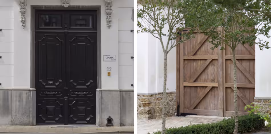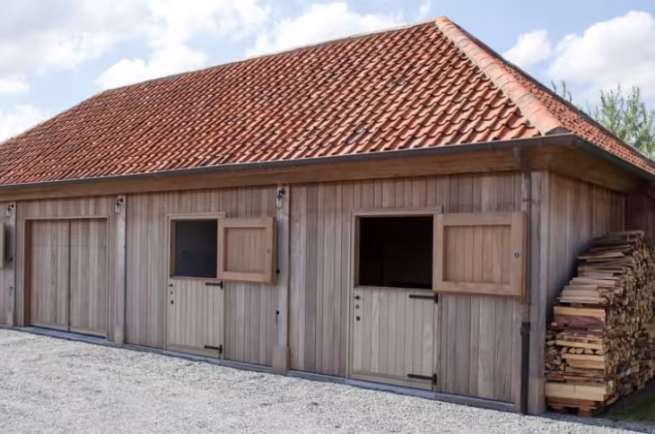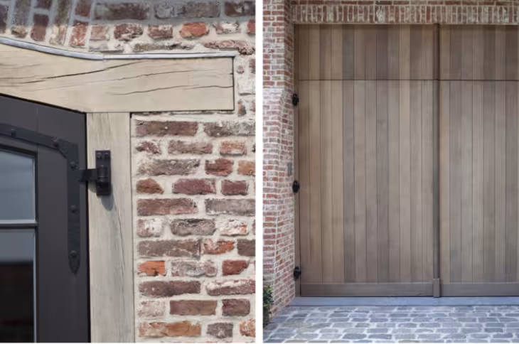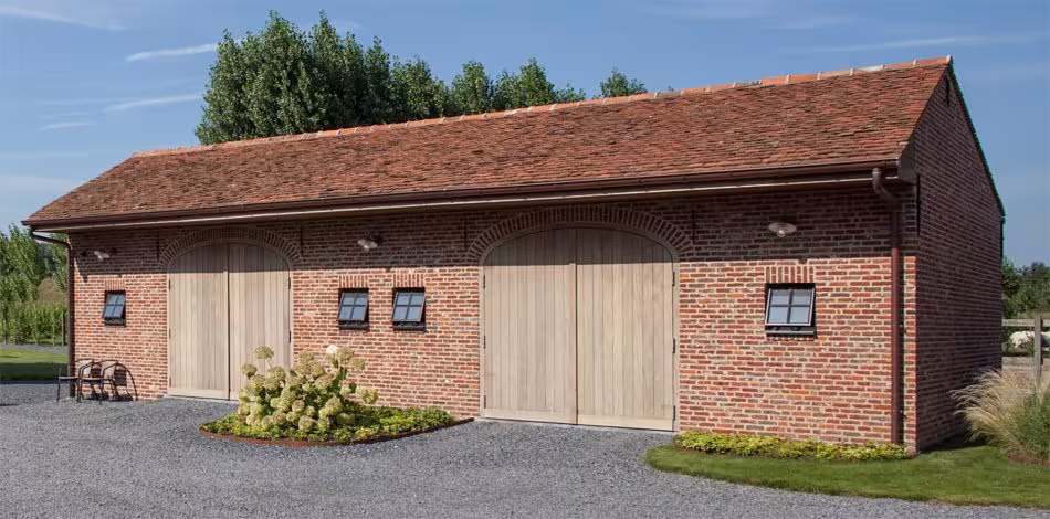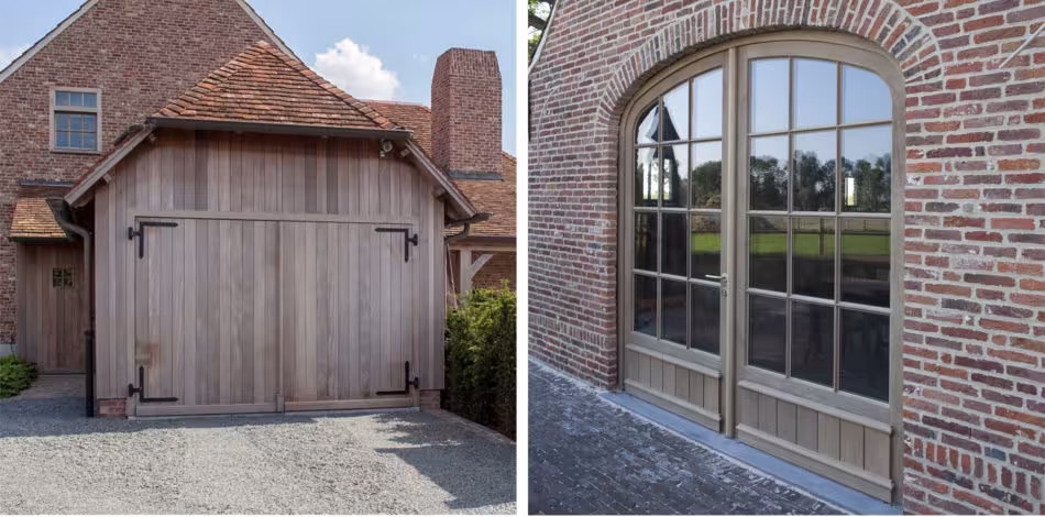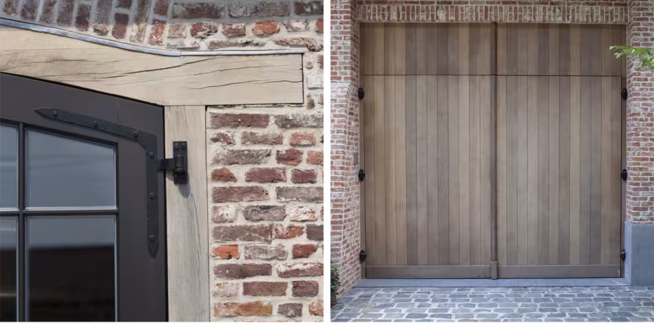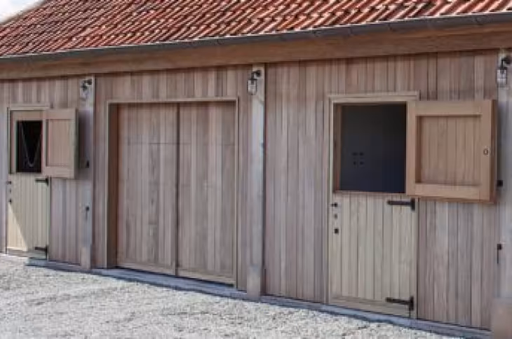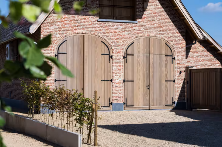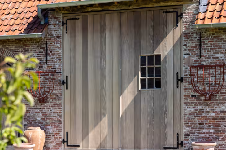 Au fil des ans, Pouleyn a développé sa propre huile hydro, spécialement adaptée à l'Afrormosia. Ce traitement rend le bois hydrofuge, assure un vieillissement naturel uniforme et limite au maximum le retrait et le gonflement. Ainsi, votre portail de ferme reste protégé pendant des années et conserve son aspect élégant.