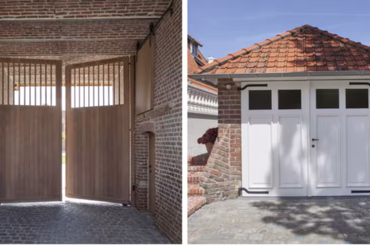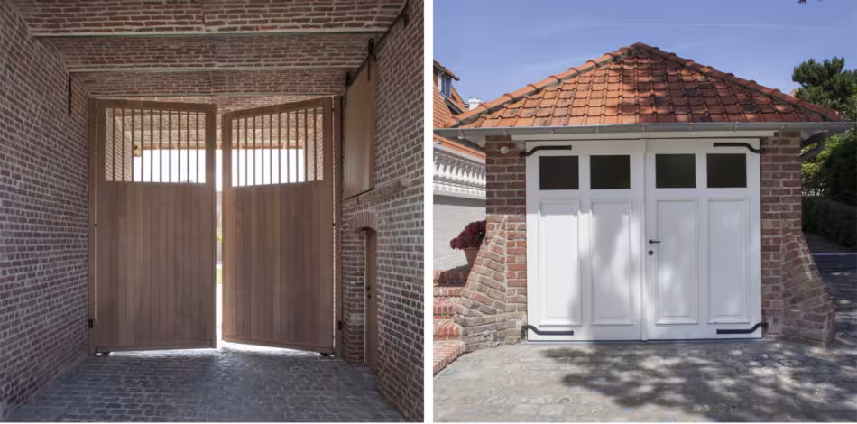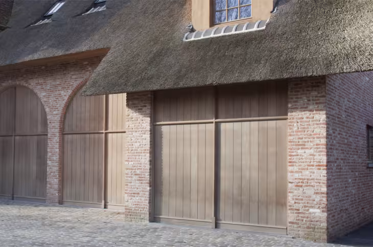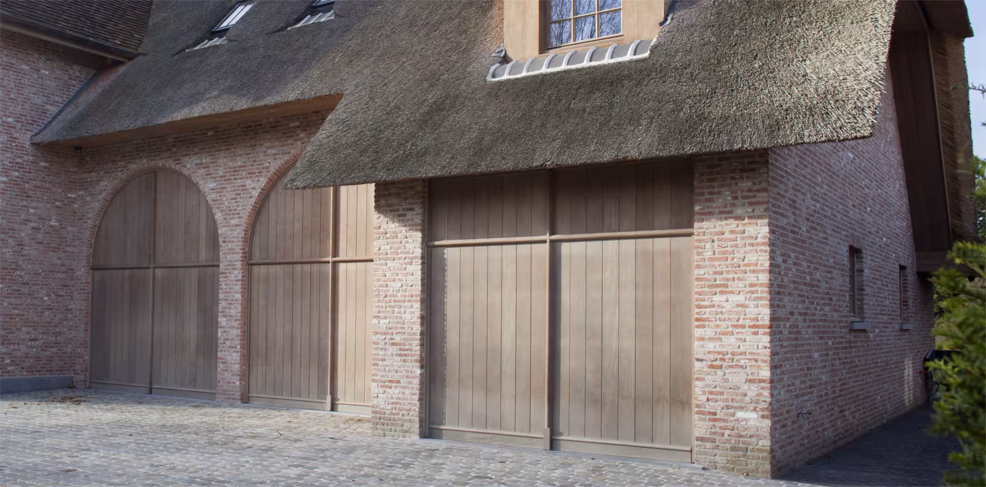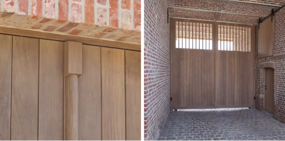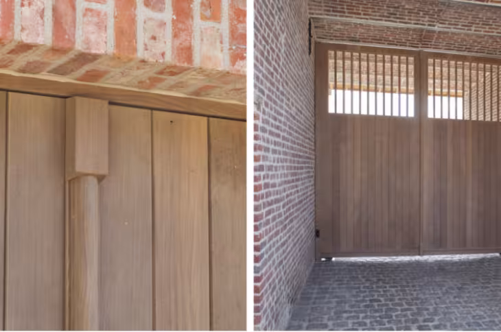 Pouleyn fabrique tous ses portails de ferme en afrormosia, l'un des bois durs les plus nobles au monde. Ce bois tropical originaire d'Afrique occidentale et centrale est réputé pour son cœur dur, sa couleur chaude et sa structure flammée unique. Le résultat : un portail qui dure des générations et dégage une classe intemporelle.