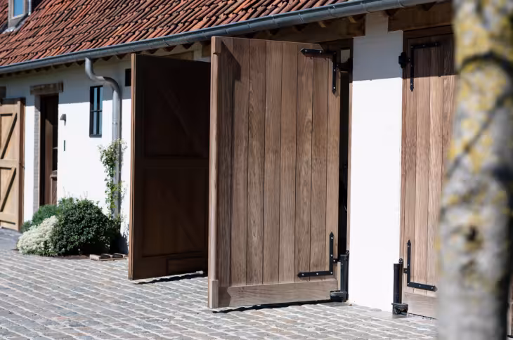 Vous recherchez une porte de caractère ? Nos portes de ferme, également appelées portes à feuillure, respirent l'authenticité et sont entièrement fabriquées sur mesure en bois massif. Elles sont idéales pour les maisons rurales, les bâtiments patrimoniaux ou ceux qui aiment un aspect chaleureux et robuste.