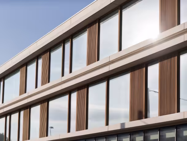 Bâtiment industriel avec menuiserie en bois naturel Afrormosia Matériaux Bois Vous avez un projet similaire en tête ? Contactez-nous Image Image Image Image Image Retour à l'aperçu