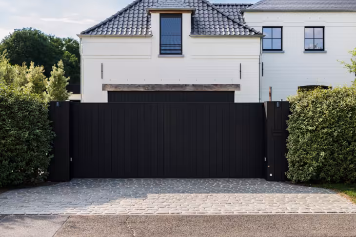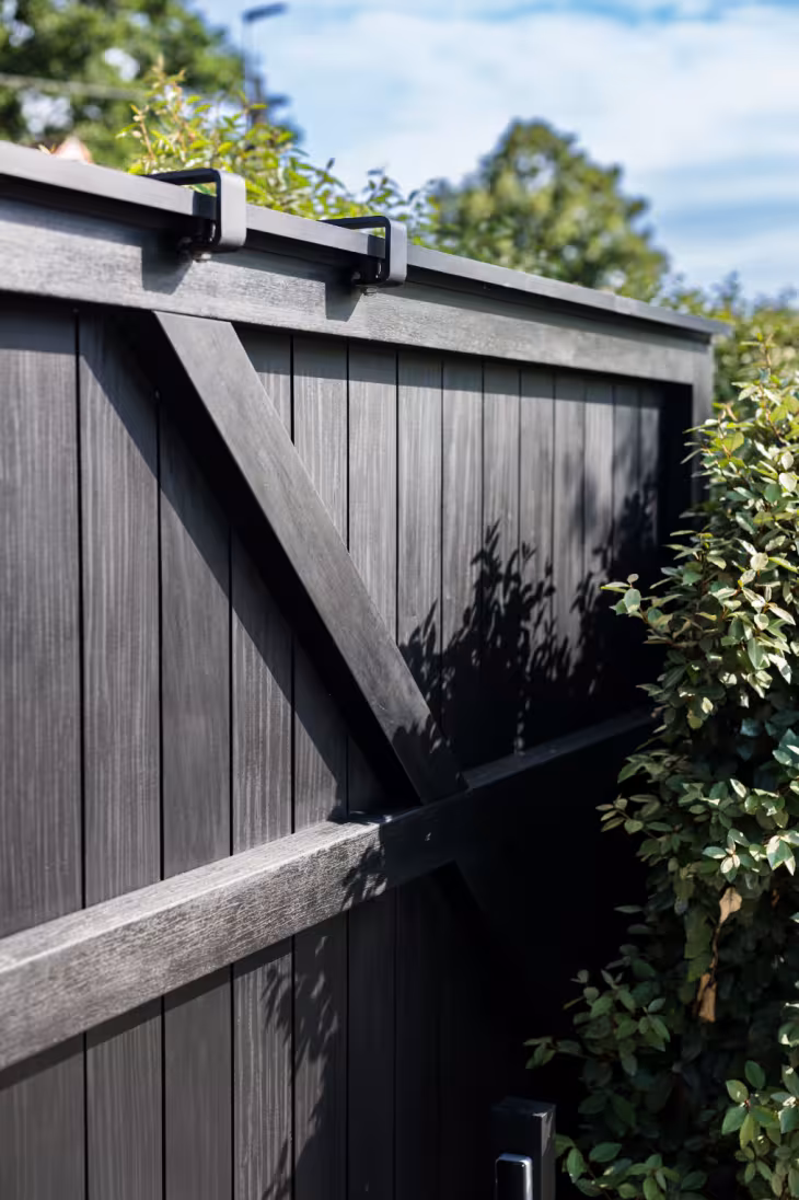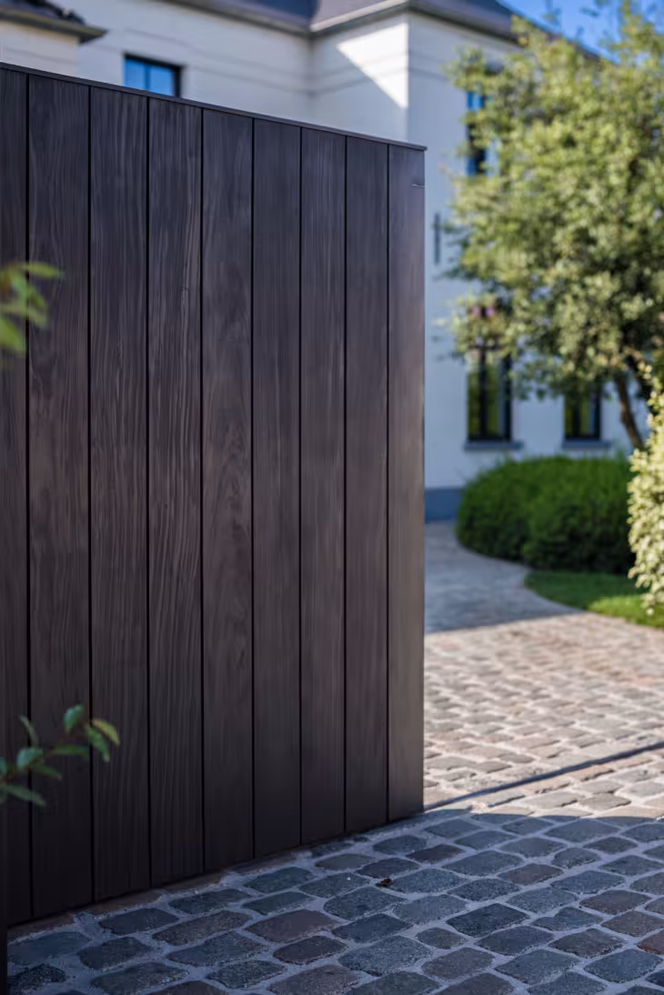 Portail coulissant en bois teinté noir avec motorisation - en Flandre orientale Matériaux Bois Vous avez un projet similaire en tête ? Contactez-nous Image Image Image Image Image Retour à l'aperçu