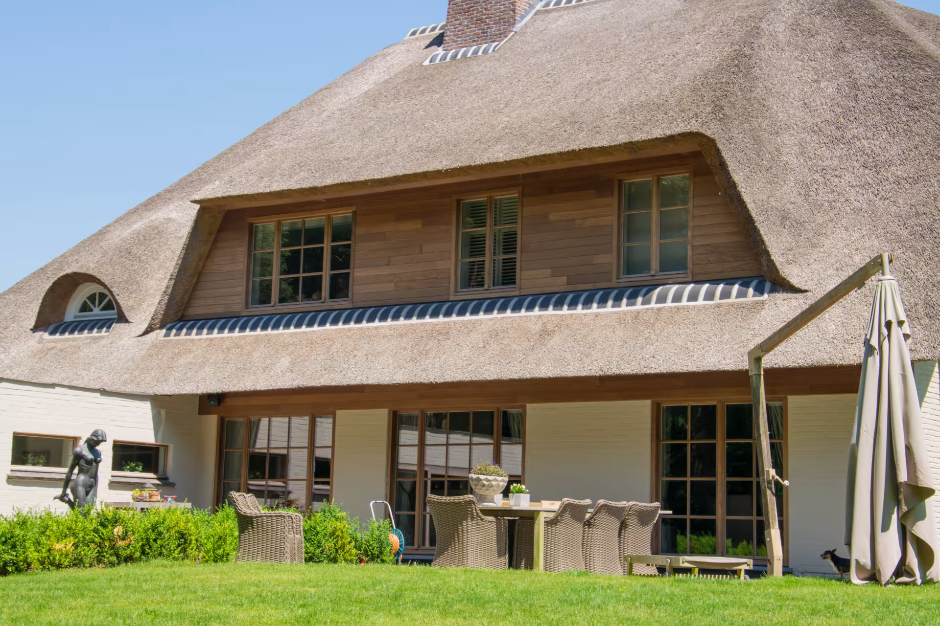 Villa élégante avec toit de chaume, menuiserie extérieure en bois et portail basculant en Afrormosia Matériaux Bois Vous avez un projet similaire en tête ? Contactez-nous Image Image Image Image Image Image Image Image Retour à l'aperçu