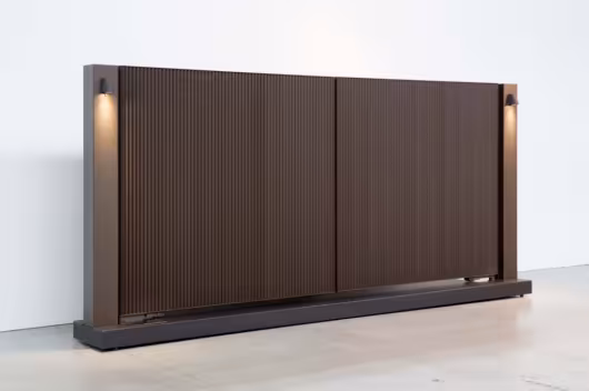 De collectie omvat diverse designs en maakt gebruik van innovatieve materialen zoals aluminium vlakvullingen, keramische panelen en verschillende oplegprofielen — elk ontworpen om luxe en kwaliteit uit te stralen. Bij poorten met een gesloten structuur worden beide zijden identiek bekleed, zodat ook vanuit de tuin dezelfde elegante afwerking zichtbaar blijft. Poorten met een open structuur worden opgebouwd via een discreet, gepatenteerd bevestigingssysteem dat zorgt voor een zuiver en esthetisch lijnenspel.