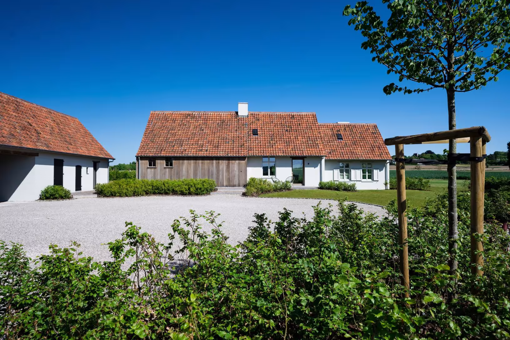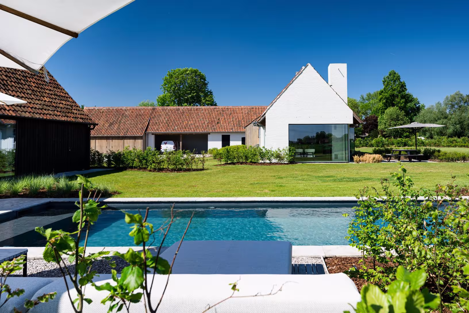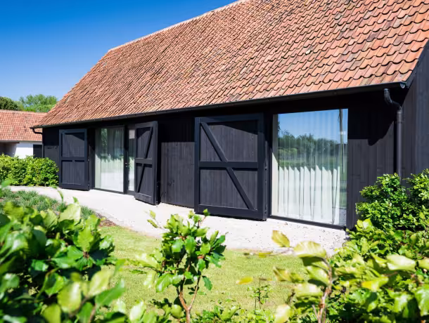 Voor dit landelijke woonproject leverde Pouleyn hoogwaardig houten schrijnwerk dat perfect aansluit bij deze architectuur. De combinatie van zwarte houtaccenten met charmante ramen zorgt voor een harmonieus geheel. De grote glaspartijen met glas op glas afwerking zorgen voor een ruimtelijk effect. Met oog voor authenticiteit en detail kreeg de woning een verfijnde, duurzame uitstraling.