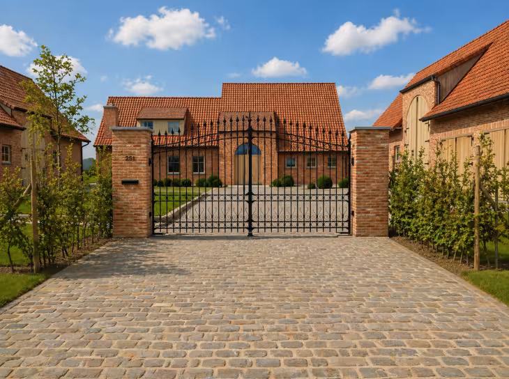 In dit project spelen houten hoevepoorten en op maat gemaakt buitenschrijnwerk de hoofdrol. De robuuste, maar verfijnde poorten versterken het authentieke karakter van de site en zorgen tegelijk voor functionele afsluiting en privacy. Het schrijnwerk sluit naadloos aan bij de architecturale lijnen en werd uitgevoerd met oog voor detail, afwerking en verhoudingen. De stijl is consequent landelijk, met een hedendaagse precisie in uitvoering—gericht op wie waarde hecht aan kwaliteit, rust en een tijdloos eindresultaat.