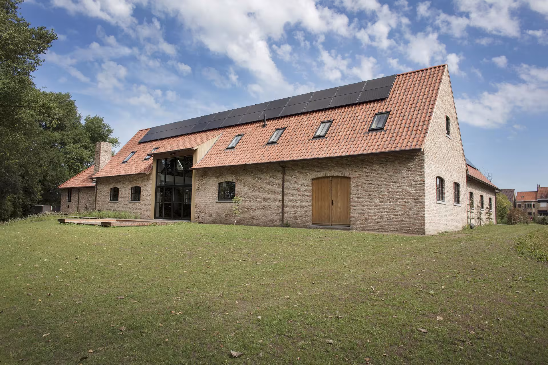 Voor deze woning in Veurne werd gekozen voor houten ramen en deuren die perfect aansluiten bij de landelijke architectuur. De combinatie van warme houttinten, verfijnde profileringen en authentieke verhoudingen zorgt voor een tijdloze uitstraling die naadloos opgaat in de omgeving.