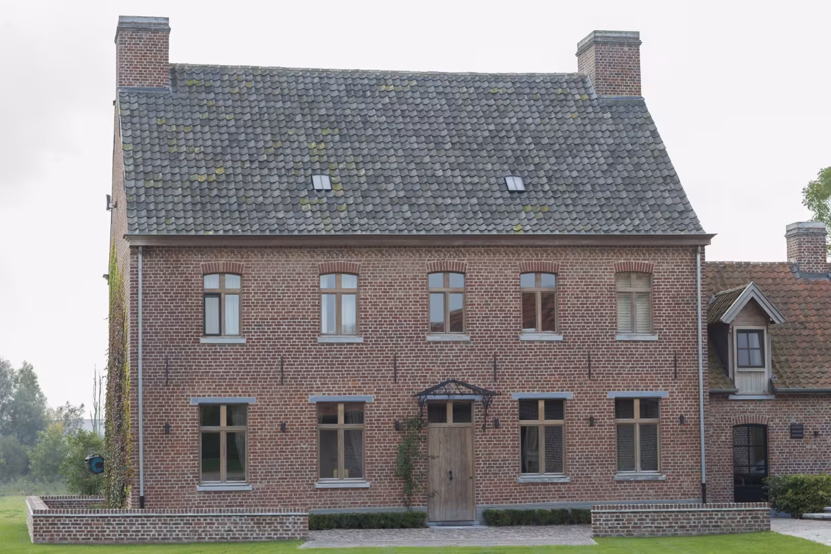 Voor deze pastoriewoning met bijgebouwen in West-Vlaanderen werd het volledige houten buitenschrijnwerk uitgewerkt met respect voor de klassieke vormentaal, zonder in te boeten op hedendaags comfort.