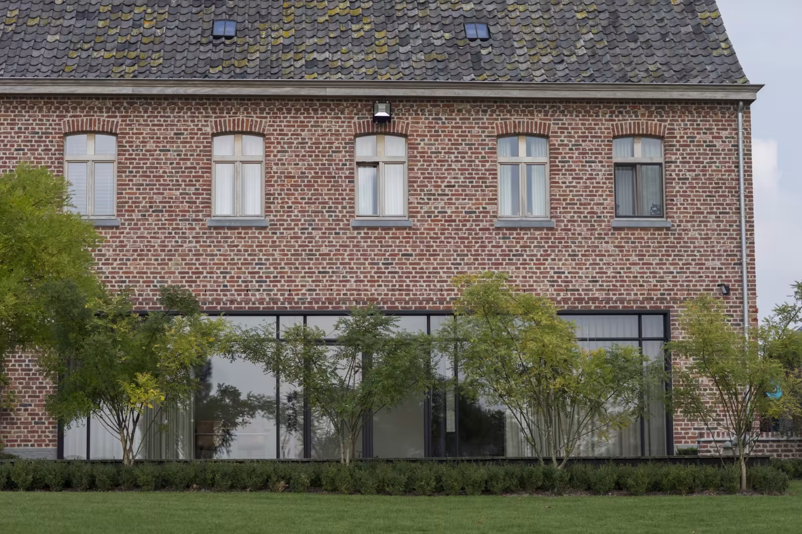 Op het gelijkvloers creëren grote raampartijen een sterke connectie met de tuin, terwijl de bovenverdieping trouw blijft aan het ritme en de proporties van de traditionele pastorijstijl. Ook de bijgebouwen werden volledig mee geïntegreerd, zodat het volledige domein één coherent geheel vormt.