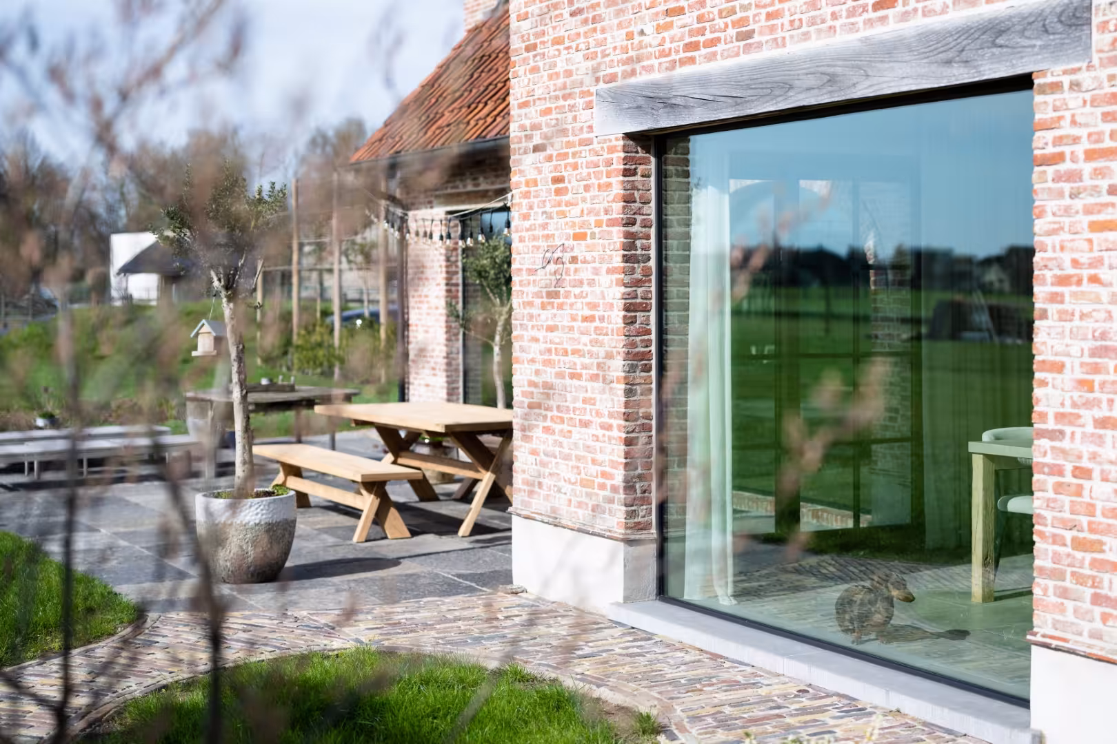 In deze karaktervolle B&B in de regio Evergem werd gekozen voor hoogwaardig houten schrijnwerk dat rust en verfijning brengt in zowel het exterieur als het interieur. De combinatie van traditionele baksteenarchitectuur met grote glaspartijen zorgt voor een subtiele balans tussen authenticiteit en hedendaags wooncomfort. Elk detail werd doordacht uitgewerkt, met een sterke focus op licht, zichtlijnen en materiaalbeleving.