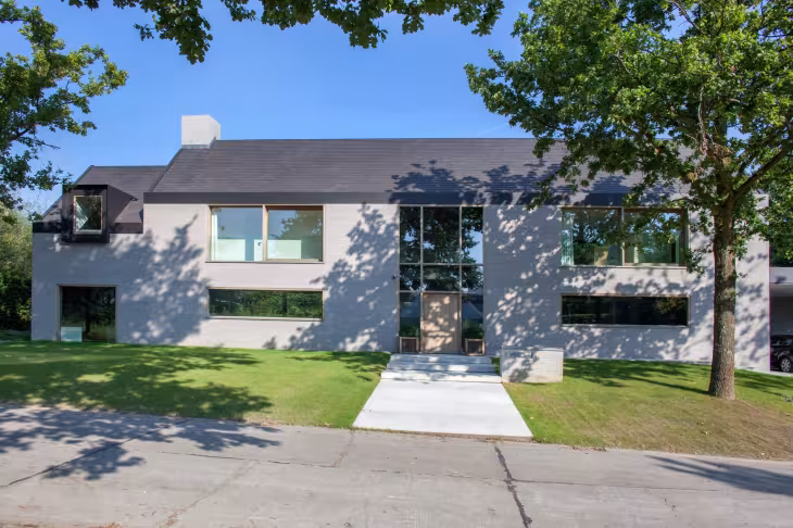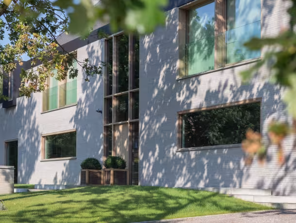 Moderne woning met grote glaspartijen en houten voordeur met planchetten in naturel Afrormosia Materialen Hout Heb je een gelijkaardig project in gedachten? Neem contact met ons op Image Image Image Image Image Image Image Image Terug naar overzicht
