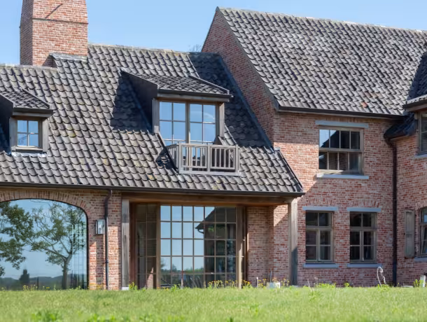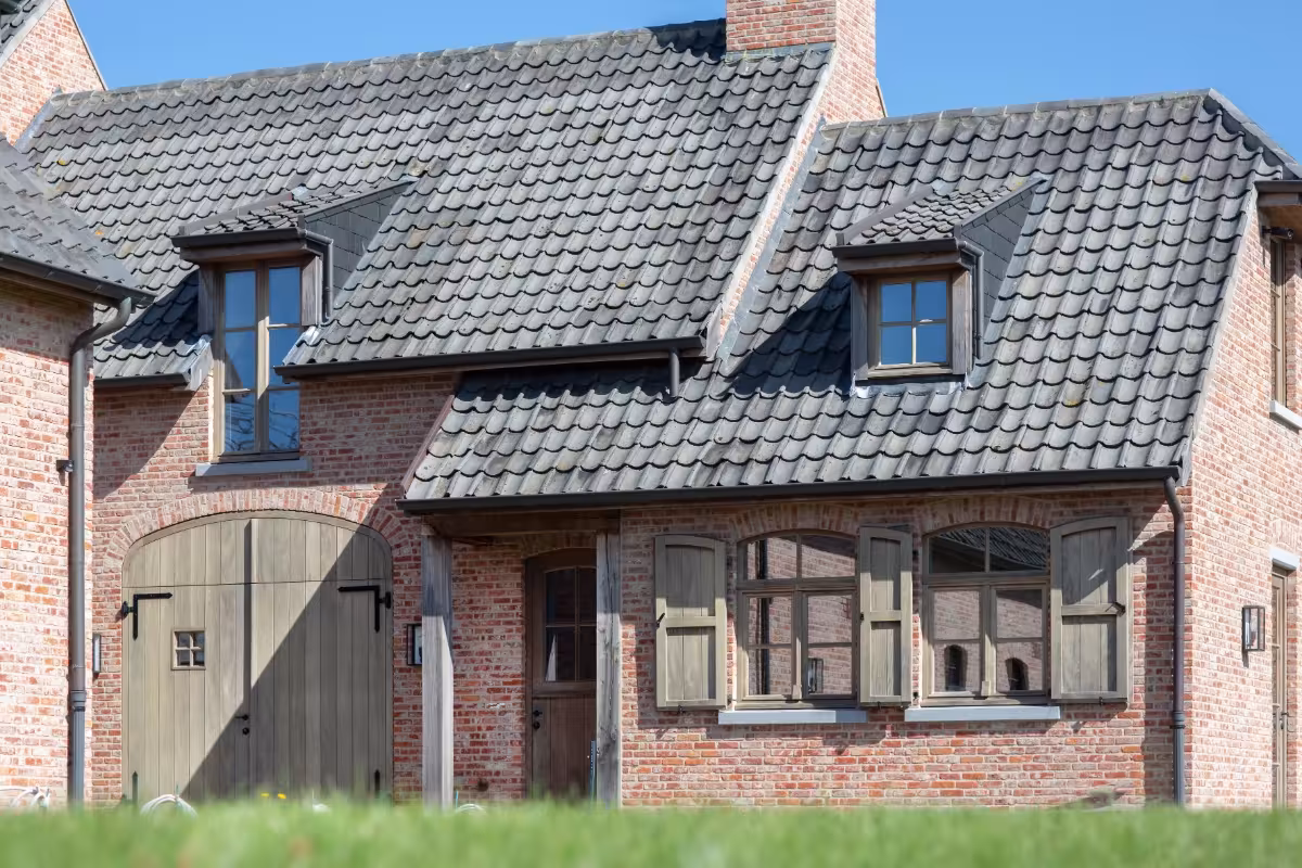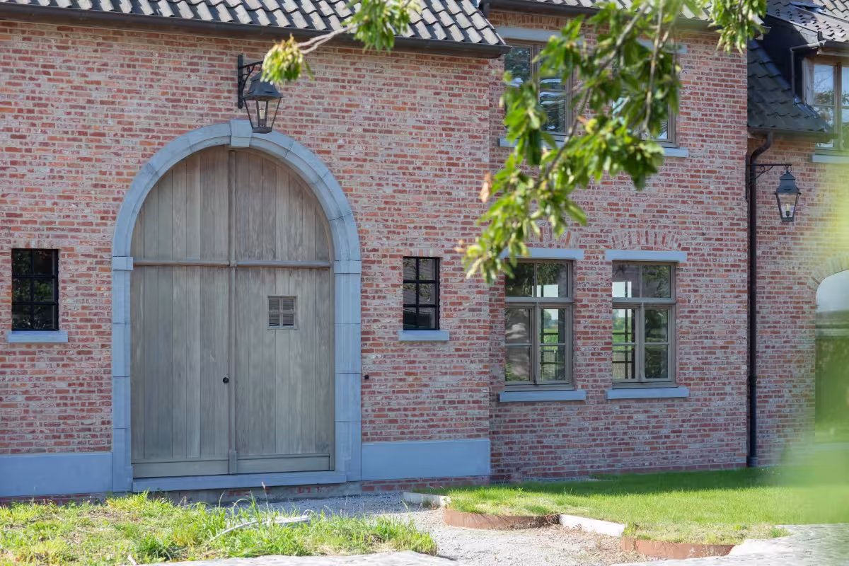 Sfeervolle landelijke woonstijl met houten hoevepoorten en ramen.