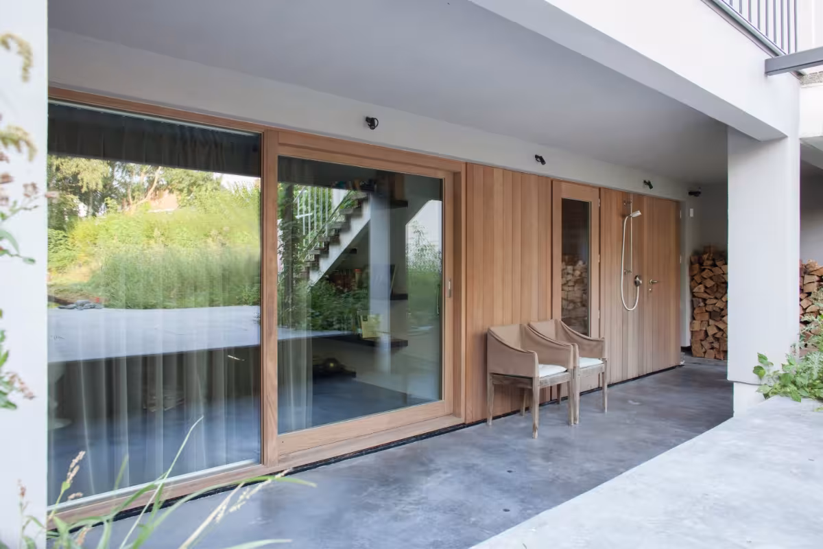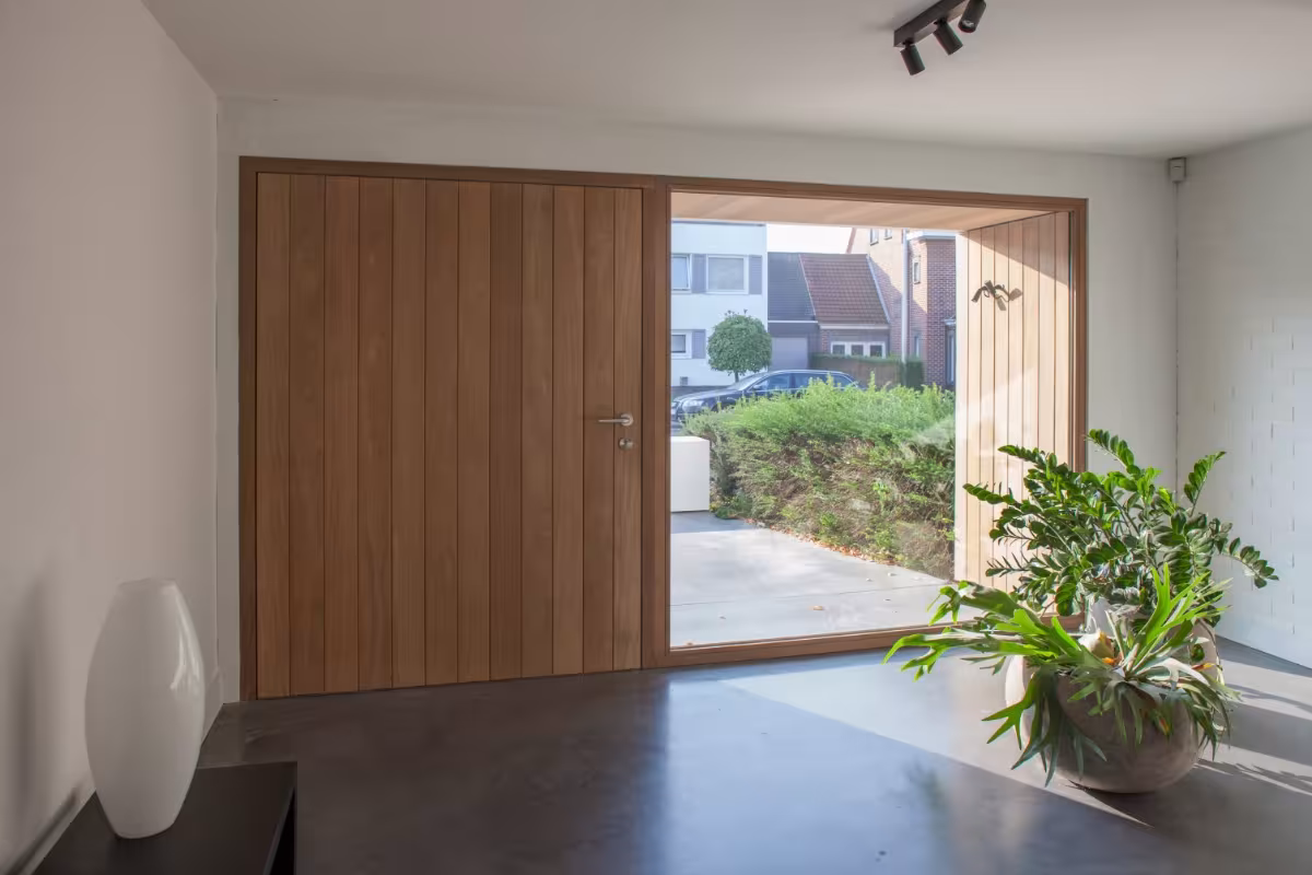 Strakke woning met houten buitenschrijnwerk in Afrormosia Materialen Hout Heb je een gelijkaardig project in gedachten? Neem contact met ons op Image Image Image Image Image Terug naar overzicht