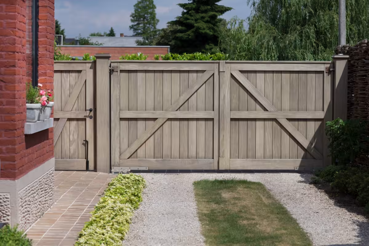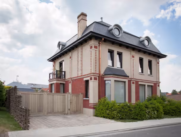 Unieke villabouw met zwart gelakt houten buitenschrijnwerk en naturelle houten tuinpoort in Afrormosia Materialen Hout Heb je een gelijkaardig project in gedachten? Neem contact met ons op Image Image Image Image Image Terug naar overzicht