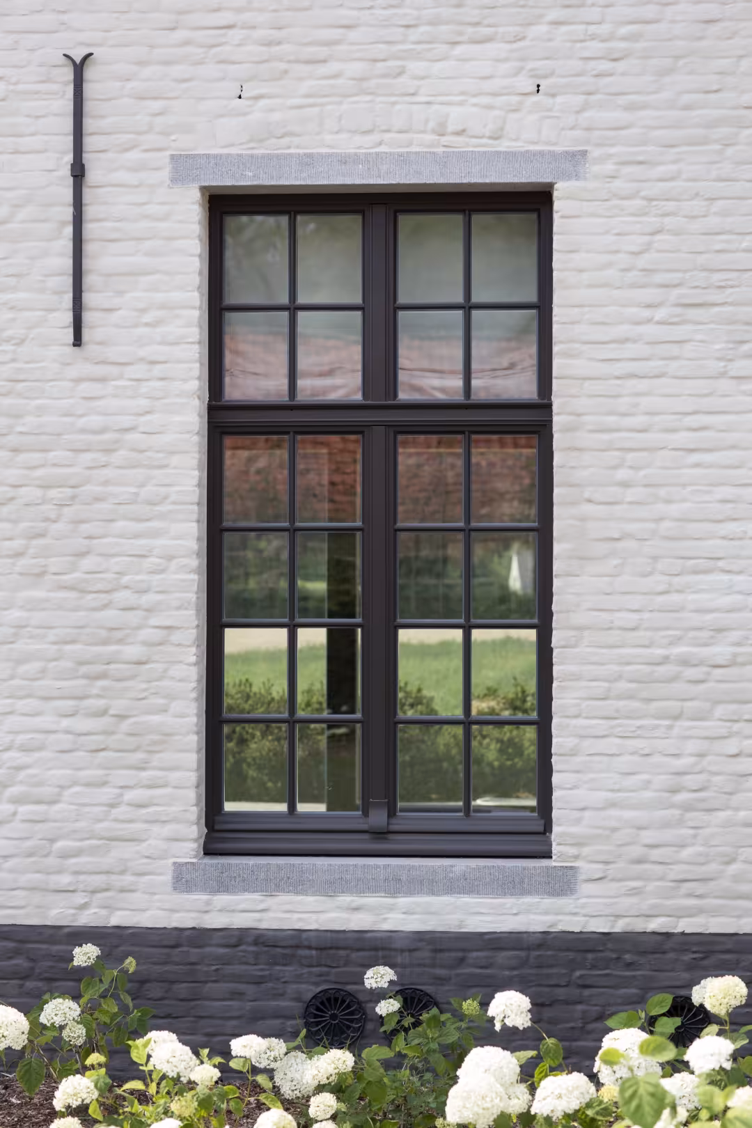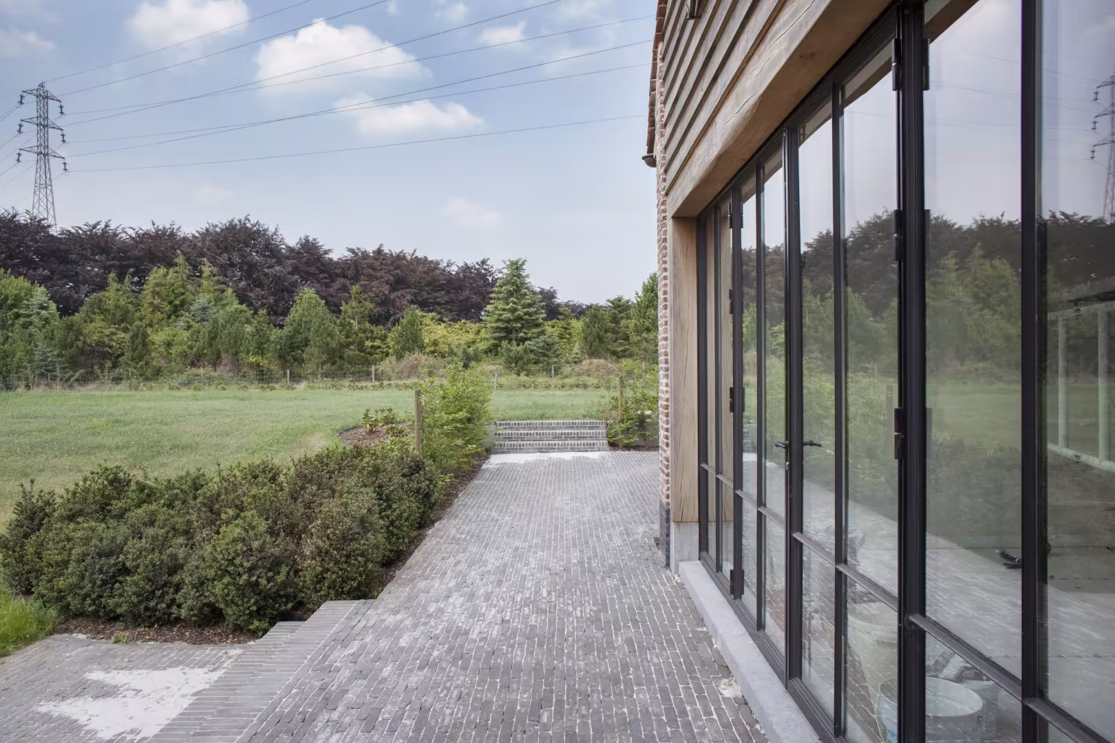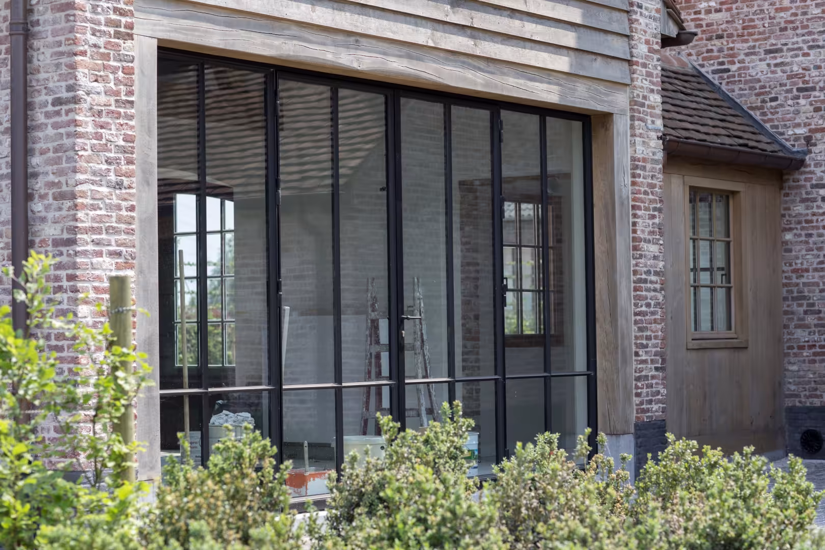 Zwart gelakt houten schrijnwerk – krachtig lijnenspel in landelijke architectuur