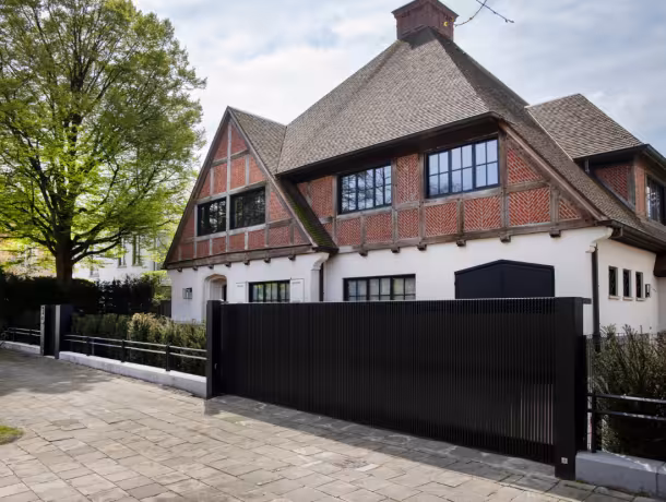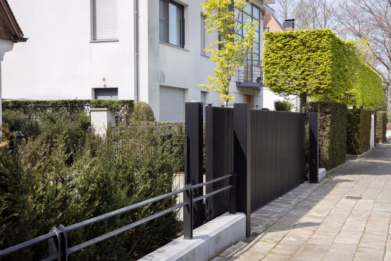 Zwarte houten schuifpoort en voetgangerspoortje Materialen Hout Heb je een gelijkaardig project in gedachten? Neem contact met ons op Image Image Image Image Image Image Terug naar overzicht